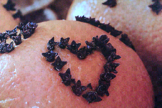 Gewürznelken. Man kann die Pomander einfach dicht bestecken,